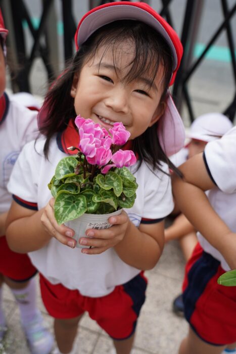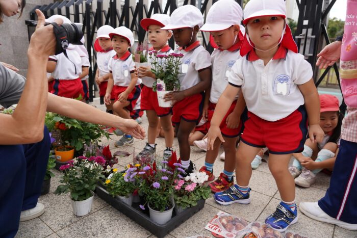 園庭の花壇に、黄組さんが秋のお花を植えてくれました。